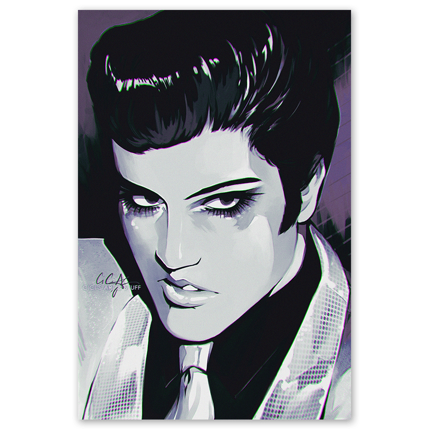High gloss and UV resistant, these various art prints of 50's era Elvis Presley are available in two unique sizes each. These prints are individually printed to order and hand cut by me so I can insure your print is perfect and ready to display!