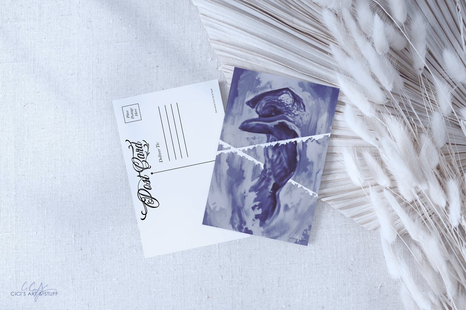 - Postcard is on matte cardstock