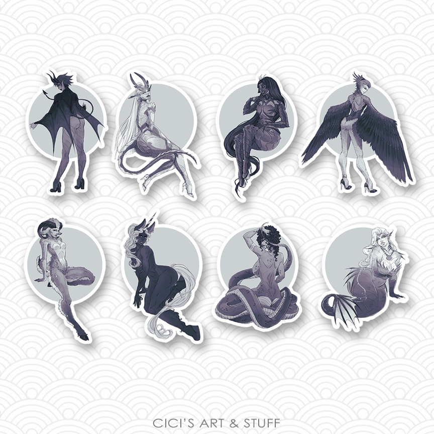 These die-cut stickers are individually sold and printed on glossy water resistant paper with silver foil detailing. Each stickers measures approximately 3.7" long.